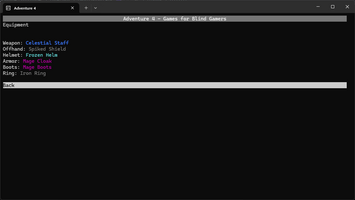 A text-based open world RPG based on a trilogy of text adventure games I made in Python when I was younger.